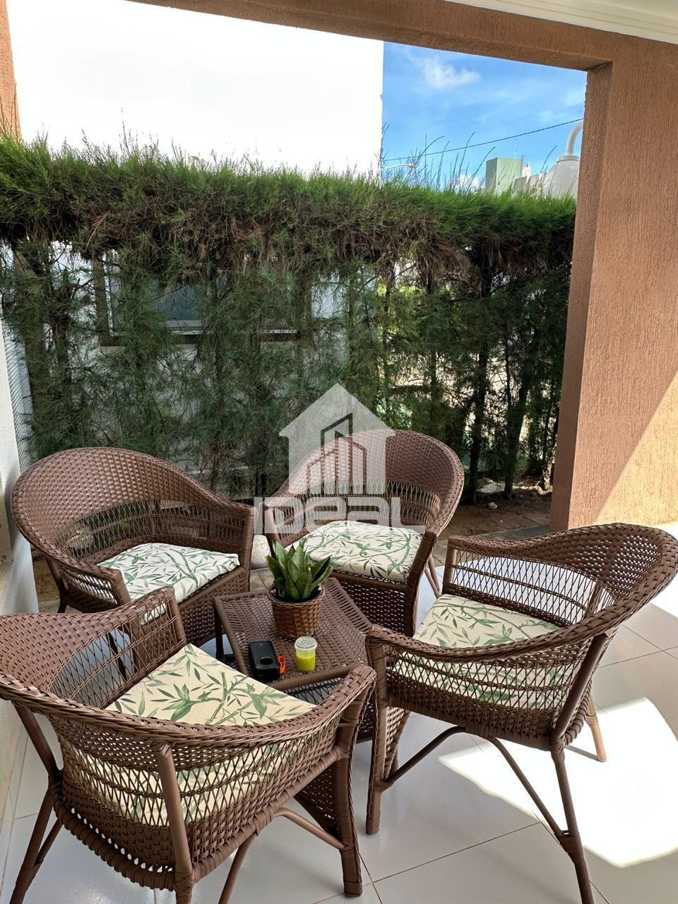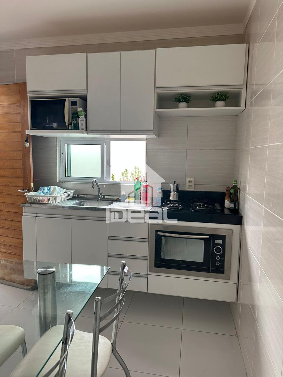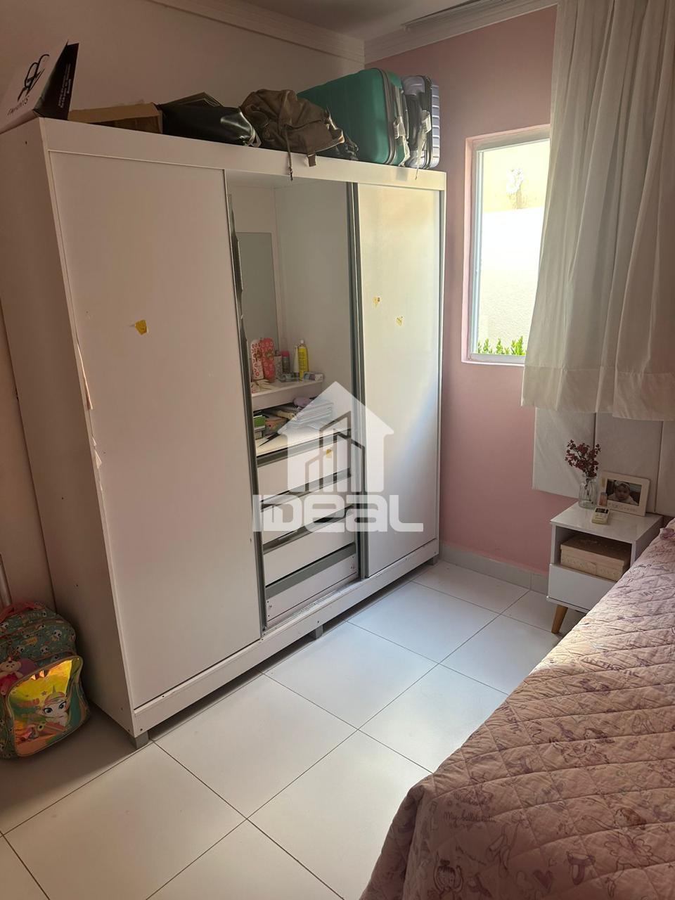 Casa mobiliada com: 02 ar-condicionados Sofá Painel de TV Mesa lateral Guarda-roupa grande Cama queen com cabeceira capitonê 02 mesas laterais de cama Cama de solteiro Cabeceira Escrivaninha Cortinas em todos os cômodos