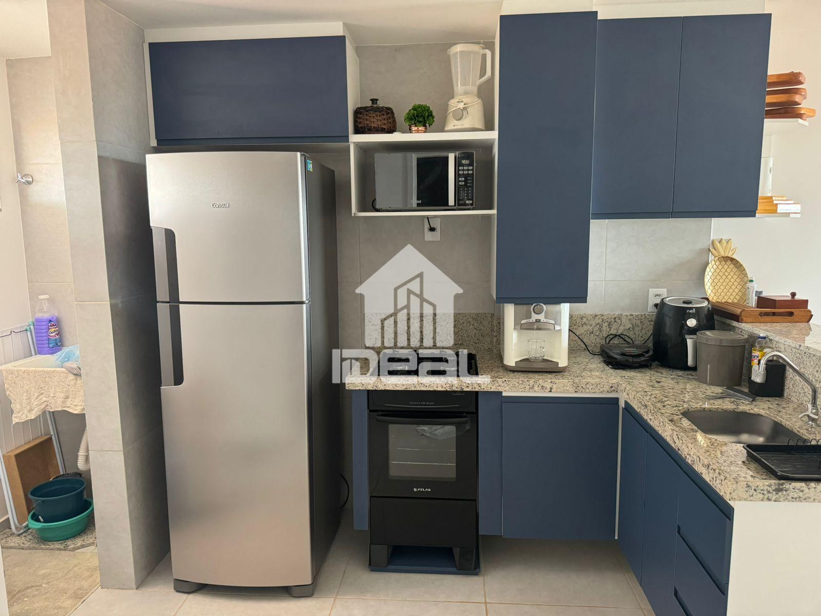 Detalhes do imóvel: 55 m² de área privativa Varanda com vista para o mar Sala de estar e jantar integradas Banheiro social 2 quartos, sendo: 1 suíte 1 semi-suíte Área de serviço Apartamento totalmente mobiliado Último andar (mais privacidade e ventilação)